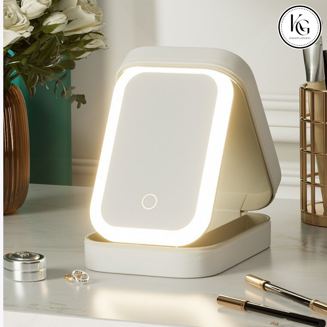 Organize your beauty essentials on the go with the Luxury Travel Makeup Box by Knight Wears. This sleek, compact makeup case features a built-in LED mirror for perfect lighting and storage compartments for makeup, brushes, rings, and accessories. Crafted for those who appreciate both style and functionality, this travel-friendly beauty box ensures that your items are neatly stored and easy to access wherever you are.